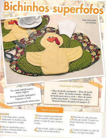Material: retalho de tecido, radiografia, feltro, o forro, linha da cor do tecido escolhido, 4 cm de velcro, tesoura, alfinetes, máquina de costura, ferro de passar, cola quente.
